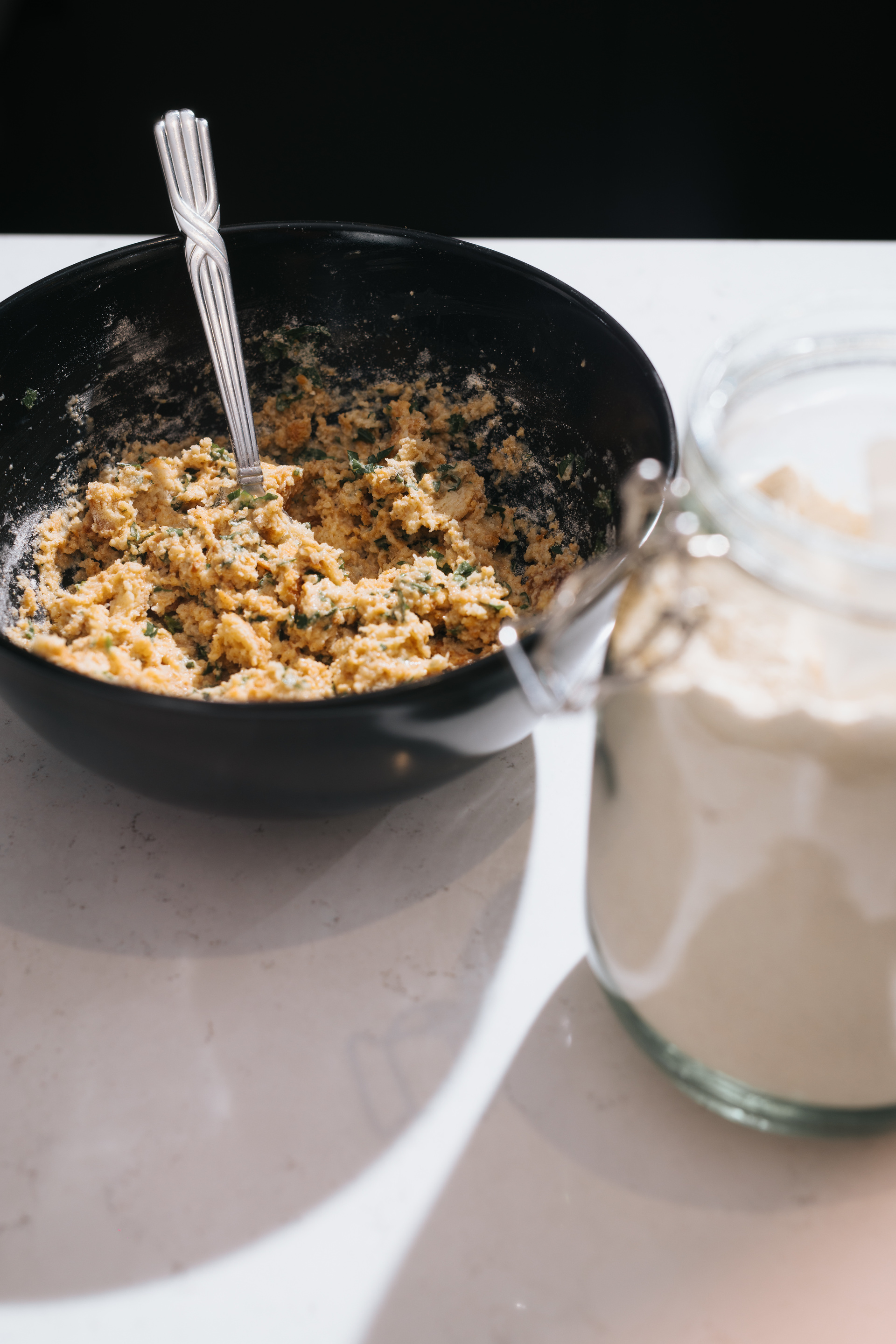 Kruh nasjeckajte na kockice i popržite na vrelom ulju. Prebacite u drugu posudu pa prelijte mlijekom u kojem ste razmutili jaje, dodali sol i papar te sjeckani peršin list. Promiješajte i ostavite da kruh omekša.